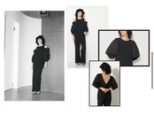 袖の2WAY以外にも、袖の2段タックや、背中の深めV開き、スタイルを良く見せる細身シルエットなど、細かいデザインのこだわりが散りばめられています。
